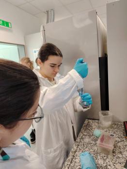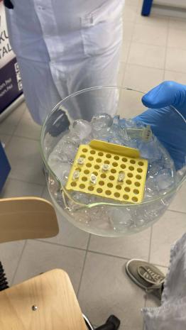 Mikor visszatértünk a szünetről már készen is állt a PCR-teszt a folytatásra. Elvégeztük a kísérlet második felét is és miközben ennek a végleges eredményére vártunk tartottak nekünk egy rövid ismertetőt az egyetemről és az általa nyújtott képzésekről, illetve a labornak a különféle berendezéseiről is.